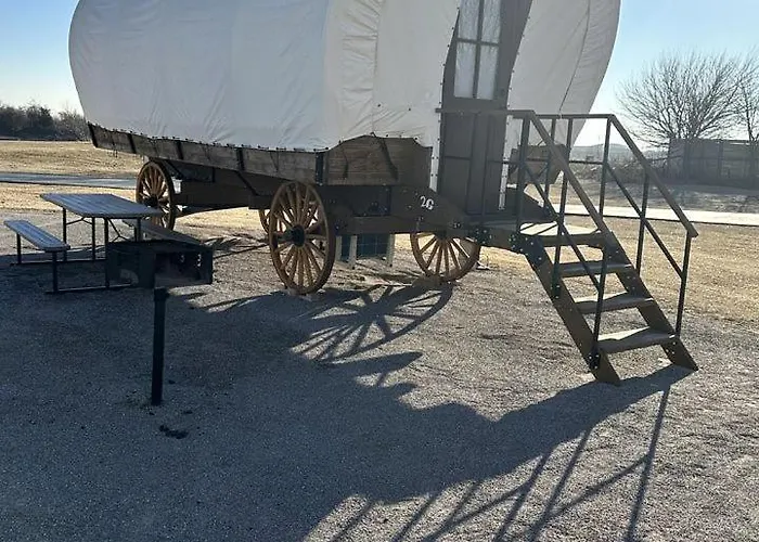 Nestled 15 minutes' walk from Emmaus Church, Oklahoma Glamping In This Wonderful Covered Wagon For Family Vacations Near Oklahoma City Moore villa entices guests to explore various tourist destinations nearby.
